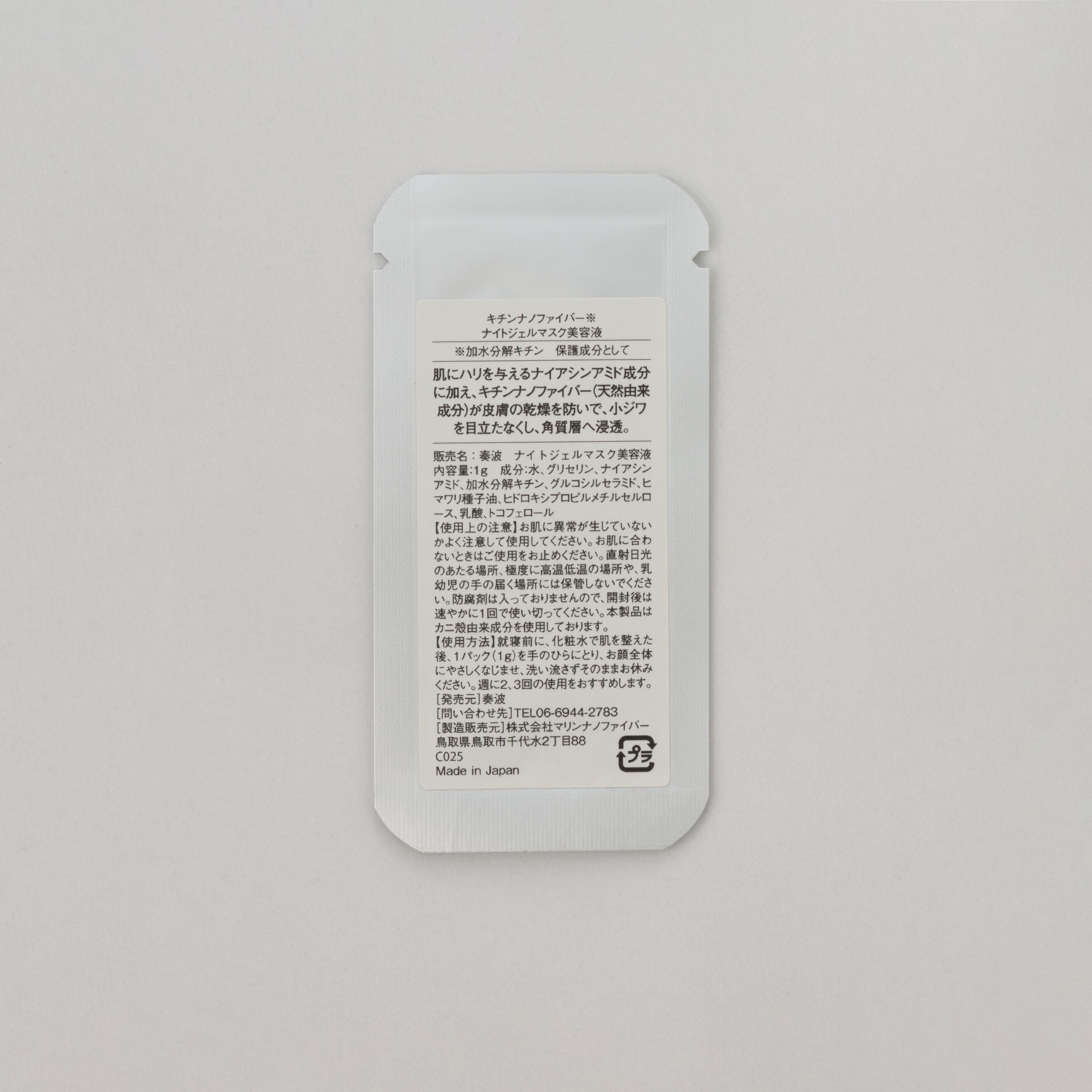 This is a single packet of Night Gel Mask Serum containing the next-generation ingredient chitin nanofiber.